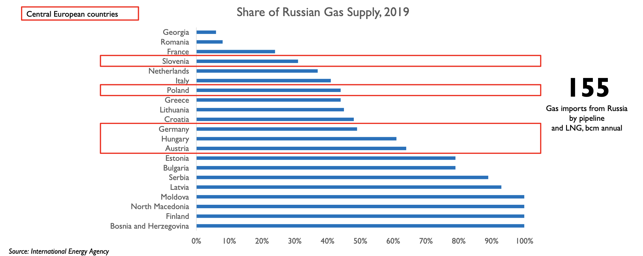 EU HAS BEEN A MAJOR IMPORTER OF RUSSIAN GAS; UP TO 155 BCM ANNUALLY TO BE DISPLACED IN THE EVENT OF A TOTAL BAN